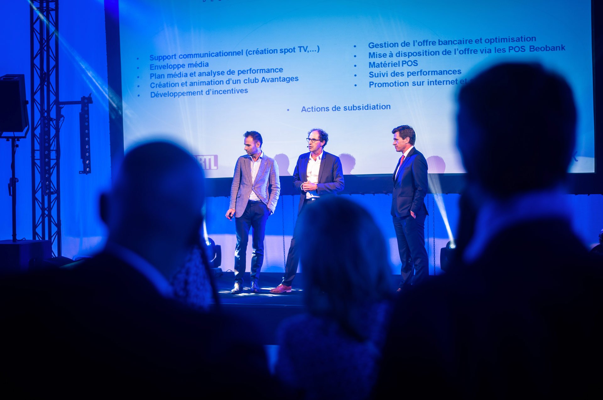 All casesProduct launch resulting from the partnership between RTL & Beobank. On the program : a fun evening where RTL's flagship games were recreated and where several guest teams competed against each other. Supervised by the star presenters of RTL, the results, recorded on a dedicated digital platform and broadcasted live on a giant screen, generated a healthy competition fulled with enthusiasm on the part of the participants.